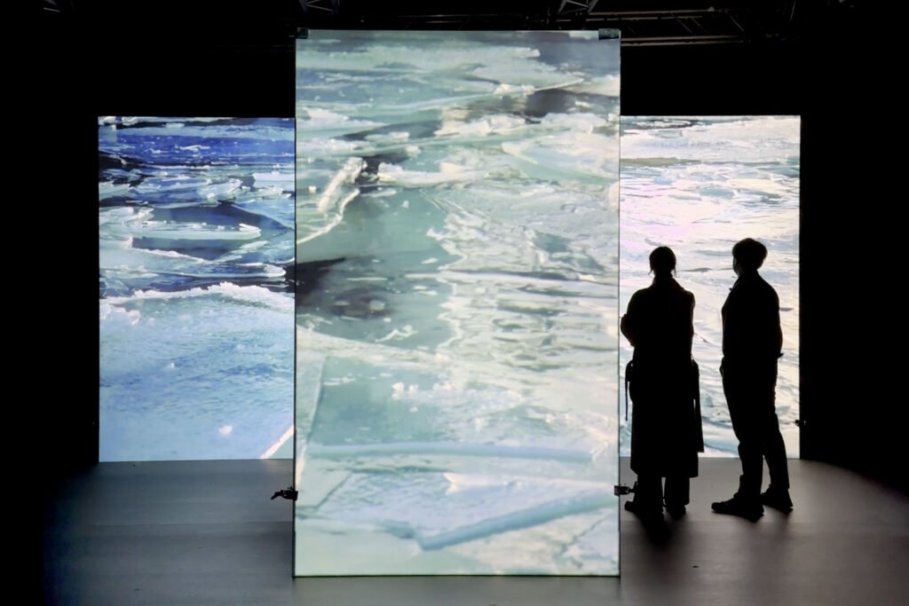 L’installazione esplora il tema annuale degli Extreme Environments: su tre grandi schermi, le proiezioni affrontano una serie di esplorazioni di spazi, situazioni e pratiche estreme e non convenzionali, creando nuove visioni artistiche. Dai paesaggi fisici agli ecosistemi digitali, dallo spazio interiore ai contesti identitari, con riflessioni su questioni contemporanee urgenti, dagli scenari di guerra alle crisi ambientali, dalla scarsità di risorse al sovraccarico di informazioni fino all’impatto dell’intelligenza artificiale nella nostra società.